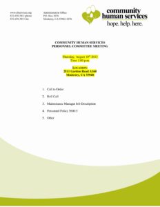August 2023 Personnel Committee Agenda