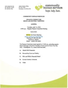 Finanace Committee Agenda April 2020