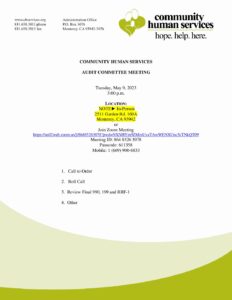 May 2023 Audit Committee Meeting Agenda