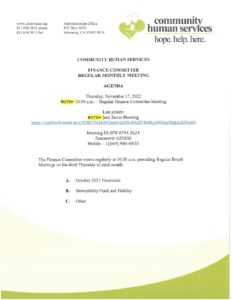 November 2022 Finance Agenda