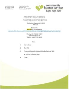 September 2021 Personnel Committee Agenda